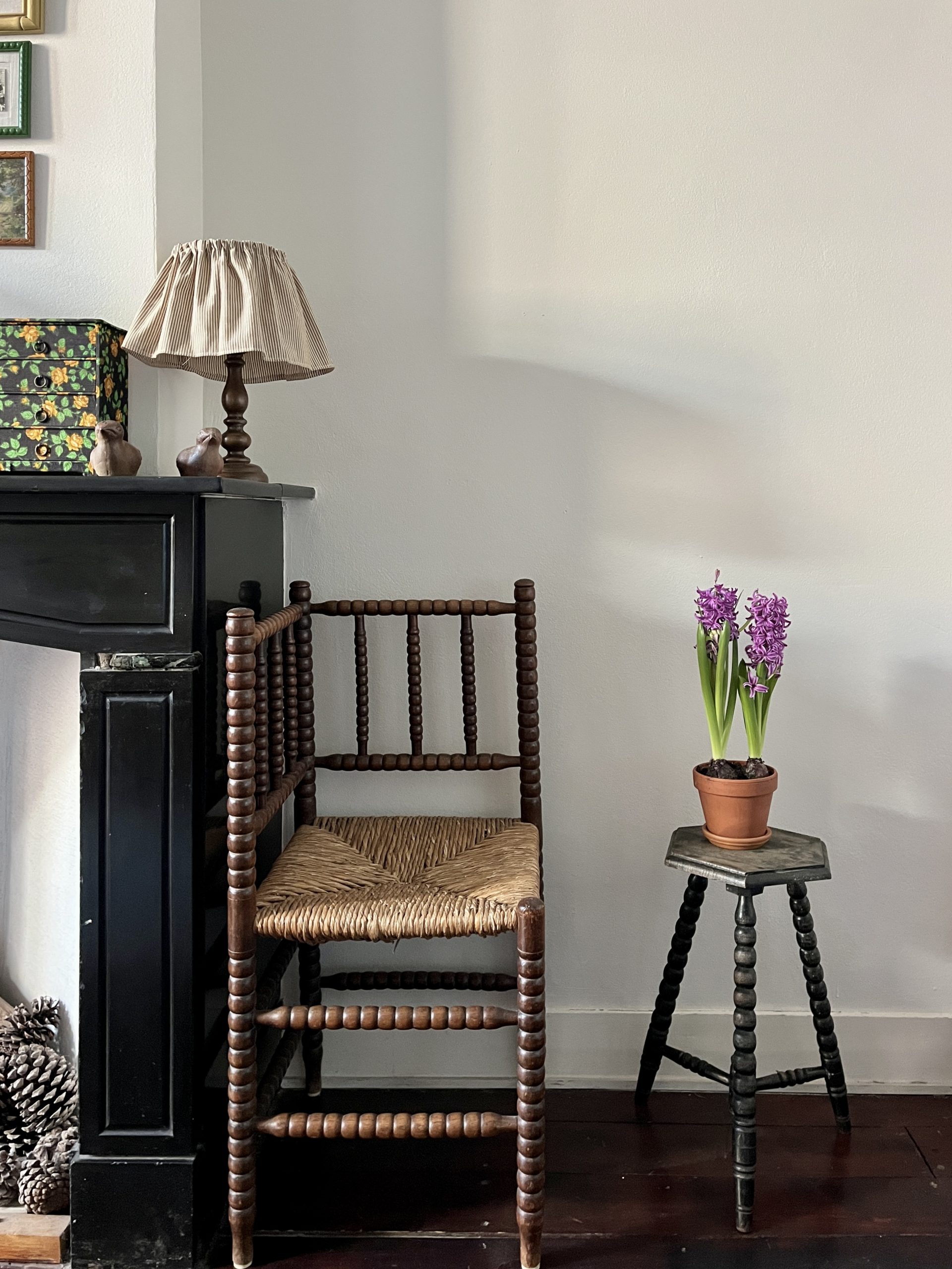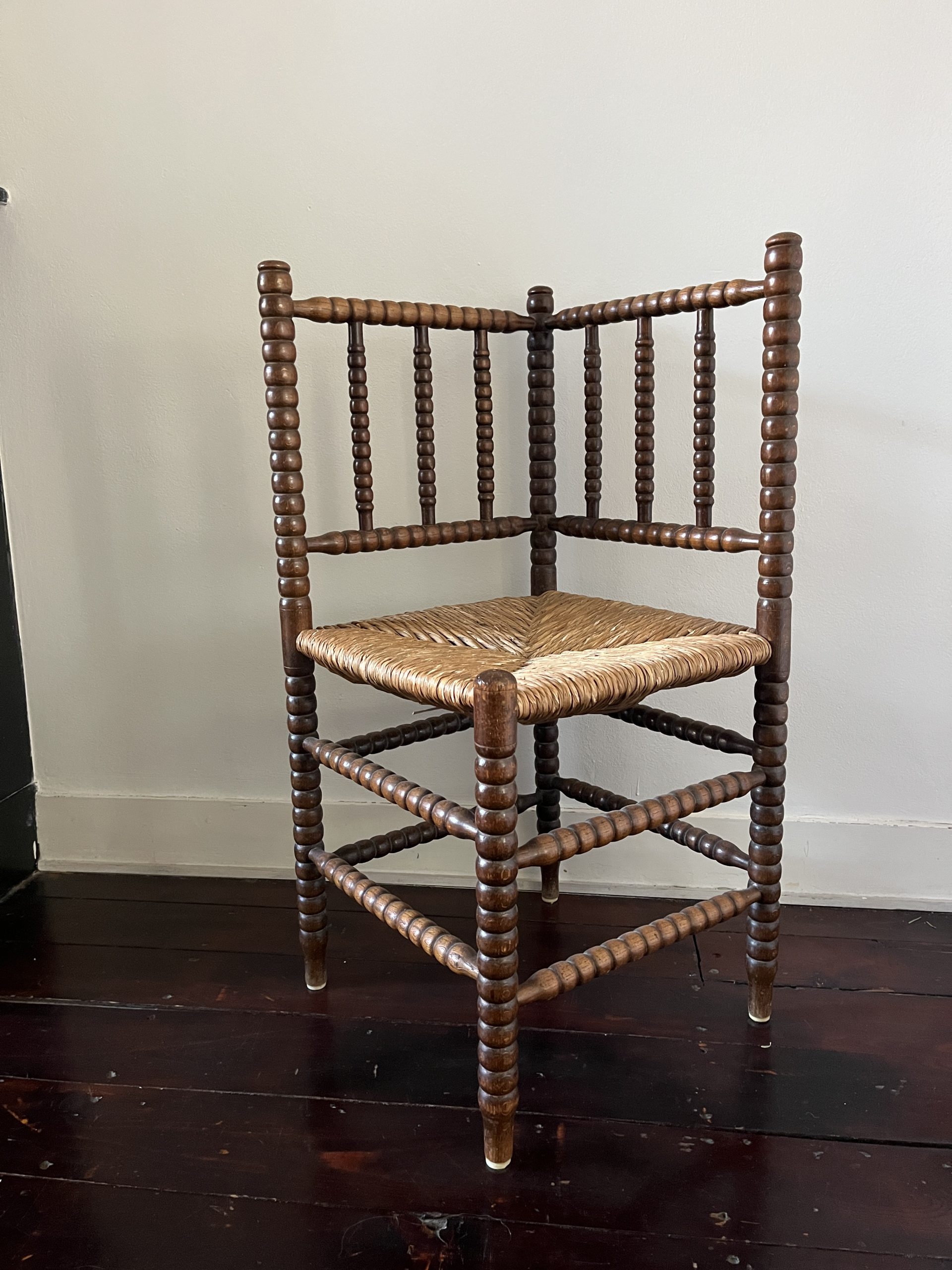 This charming antique bobbin corner chair has been lovingly restored and is in excellent condition. It shows small authentic signs of use, which only add to its character and charm.